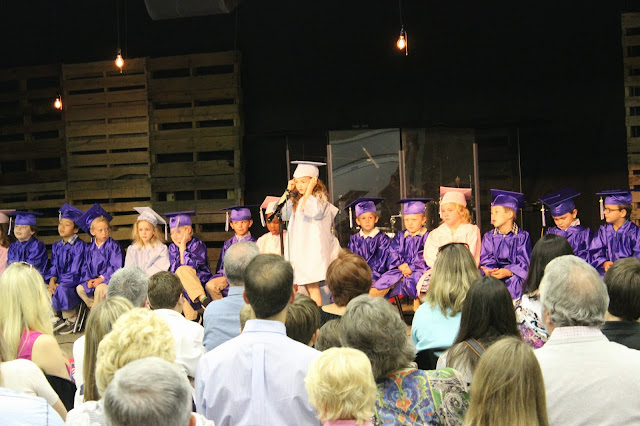 Eva graduated kindergarten!!!!! I would have never dreamed how much this girl would have grown in this year! Eva has been our quiet, reserved, not-a-fan-of-an-audience-by-any-means child. This is the kids who stared like a deer in headlights when it was time to perform hand-bells with the children's choir. She would not even reach down to pick up her bells. So when she came home with her speaking part for graduation, mt heart skipped a beat...for her. She rocked it like a boss! Eva has worked so hard at reading and has become quite proficient! She loved art and to explore science and history. She really enjoyed her classmates and Ms. Claire too!